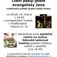 I letos srdečně zveme na čtení pašijí a společnou večeři na motivy židovské sederové hostiny. Budeme rádi, když se zapojíte do čtení - prosím dejte vědět prostřednictvím formuláře níže, nebo napište farářovi, zavolejte apd.