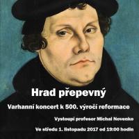 Srdečně zveme ke slavnostnímu koncertu. Vystoupí profesor Michal Novenko a reformační "hity" doplní také krátkým doprovodným slovem. Zazní chorální předehry a různé skladby na témata protestantských chorálů. Kromě barokních autorů (Bach, Pachelbel) zazní i hudba současná.