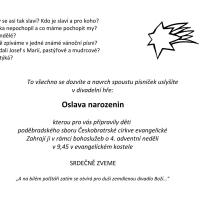 Srdečně zveme na vánoční divadlo dětí. Hrát se bude "Oslava narozenin" od Zdeňka Šorma.