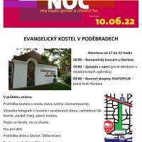 Také letos zveme na Noc kostelů. Zapište si datum do diáře. V našem areálu vedle tradičního programu plánujeme letos také koncert kapely Svatopluk, která hraje písničky Svatopluka Karáska. Podrobnější program zde naleznete časem.