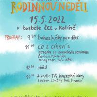 Seniorátní setkání všech generací po dvou letech v Kolíně. Během bohoslužeb, které budou pro děti, bude rovněž pověřen náměstek seniorátního kurátora Tomáš Fér. Po bohoslužbách beseda se synodním seniorem Pavlem Pokorným (Co s církví?). Oběd a divadlo pro děti.